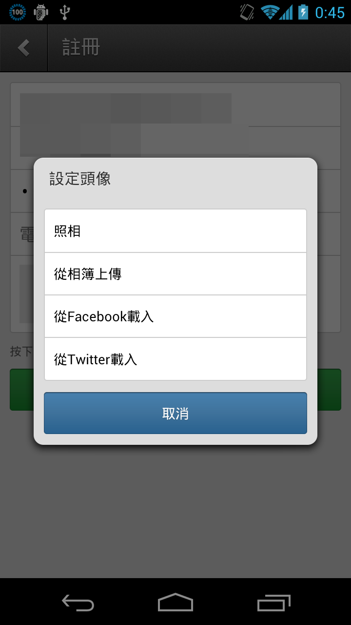 依序輸入信箱、帳號及密碼等資訊,最後的頭像可以選擇照相或是從相簿等方式來匯入。