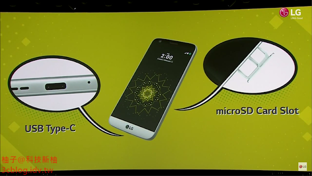 LG G5 採用了正反皆可插的 USB Type-C,亦支援記憶卡插槽。