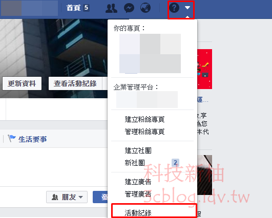 如果是電腦版,在右上角有個倒三角形,點了之後,找到「活動記錄」選項。